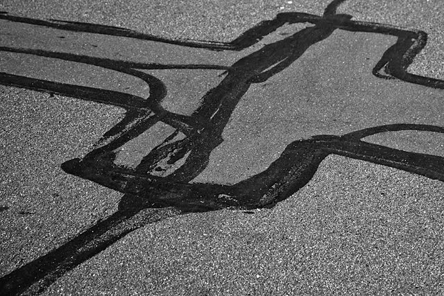 http://www.tombrown.id.au/monochrome/monochrome.html. The bridge has tar covering the surface in abstract patterns. I was reminded of Eric Myrvaagnes series